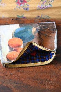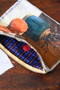 Each image has been photographed and faithfully reproduced on linen/cotton fabric on both sides. The perfectly proportioned zip clutch to carry your phone, keys, wallet and beauty essentials.