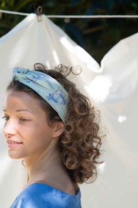 We've used surplus fabrics and new modern vintage prints to create some versatile, useful turban style hair bands.