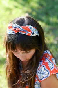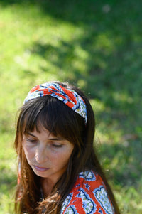 We've used surplus fabrics and new modern vintage prints to create some versatile, useful turban style hair bands.